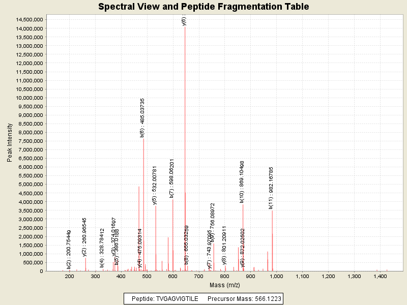 Observed intensity of peptide: 4.1265608E7
