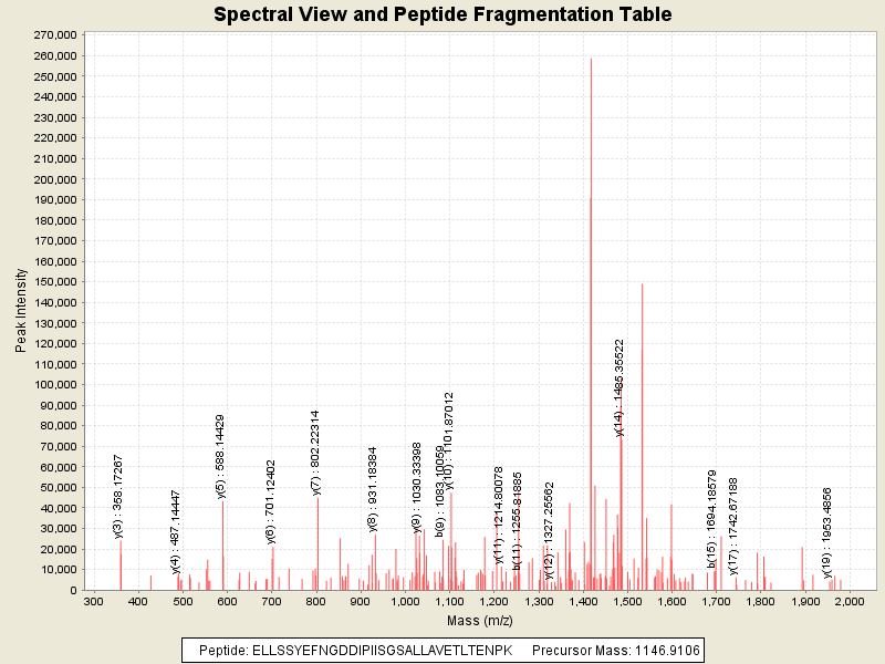 Observed intensity of peptide: 1.433859E7