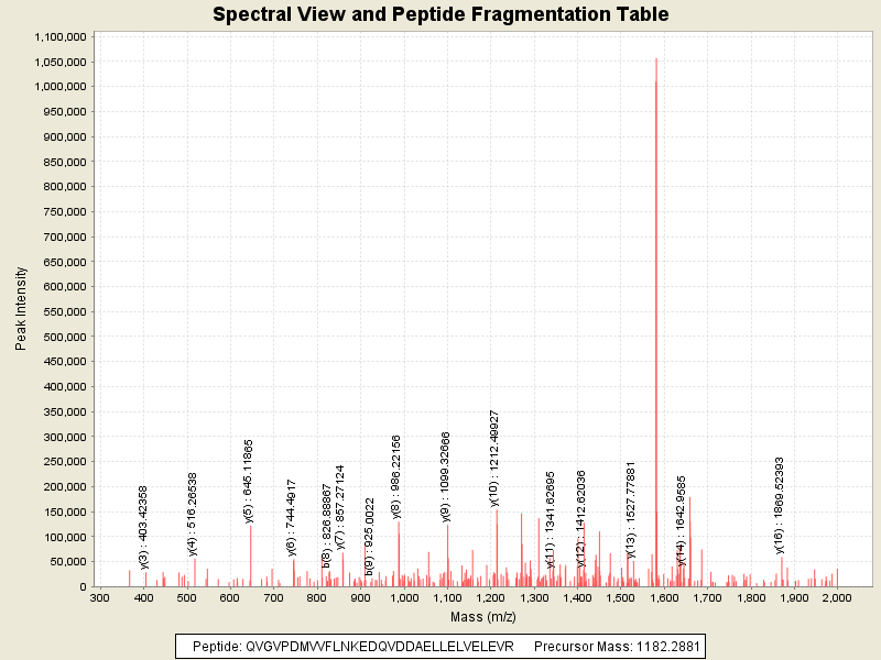 Observed intensity of peptide: 6411103.0