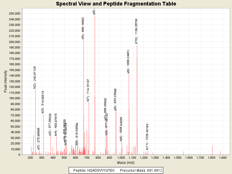 Observed intensity of peptide: 132018.0