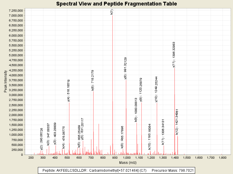 Observed mass of peptide: 798.7021484375, (+2)