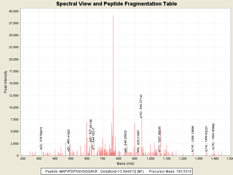 Observed mass of peptide: 785.5516357422, (+2)