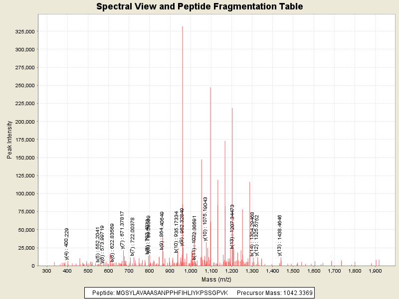 Observed intensity of peptide: 1862912.0