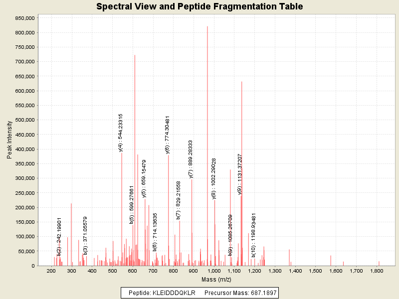 Observed mass of peptide: 687.1896972656, (+2)