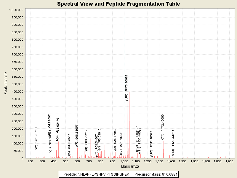 Observed intensity of peptide: 3159280.0