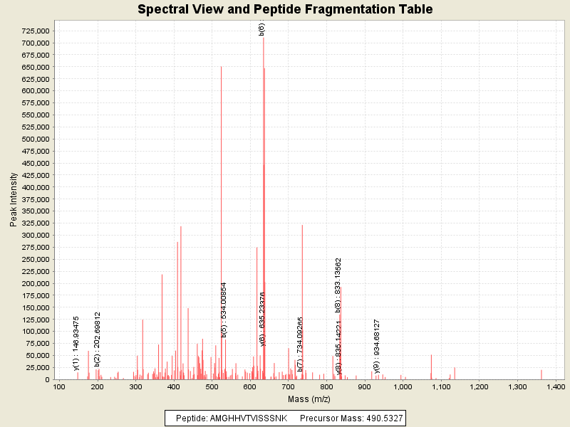 Observed intensity of peptide: 4027971.0