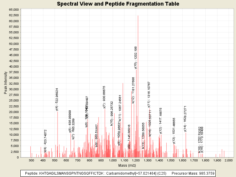 Observed intensity of peptide: 2799885.0