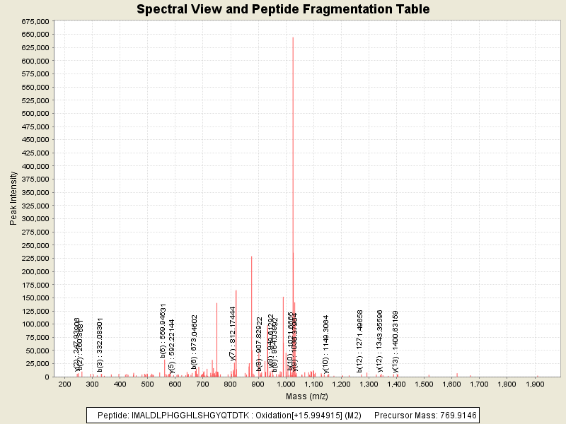 Observed intensity of peptide: 2700575.0