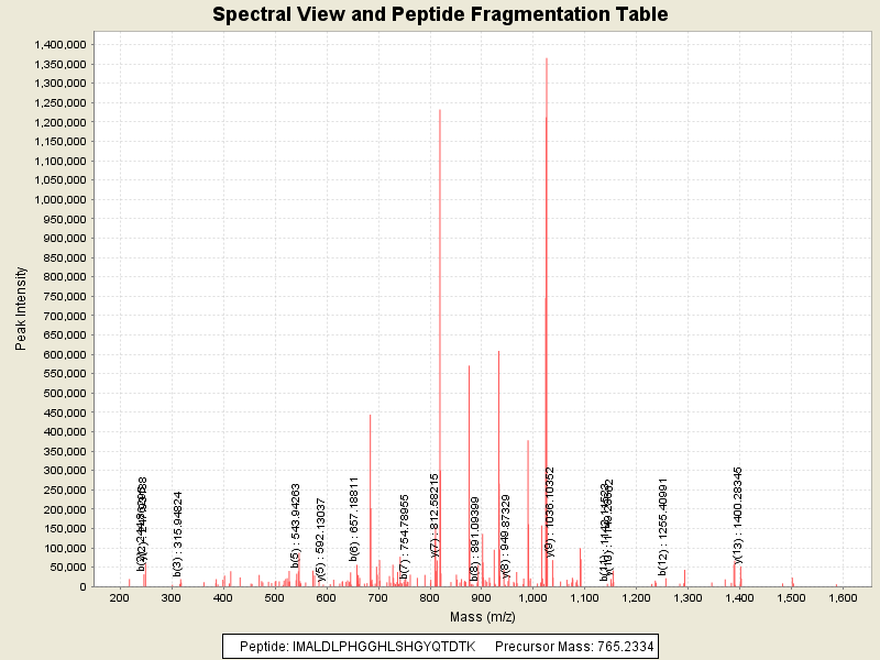 Observed intensity of peptide: 7112753.0