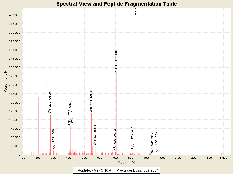 Observed intensity of peptide: 1953144.0