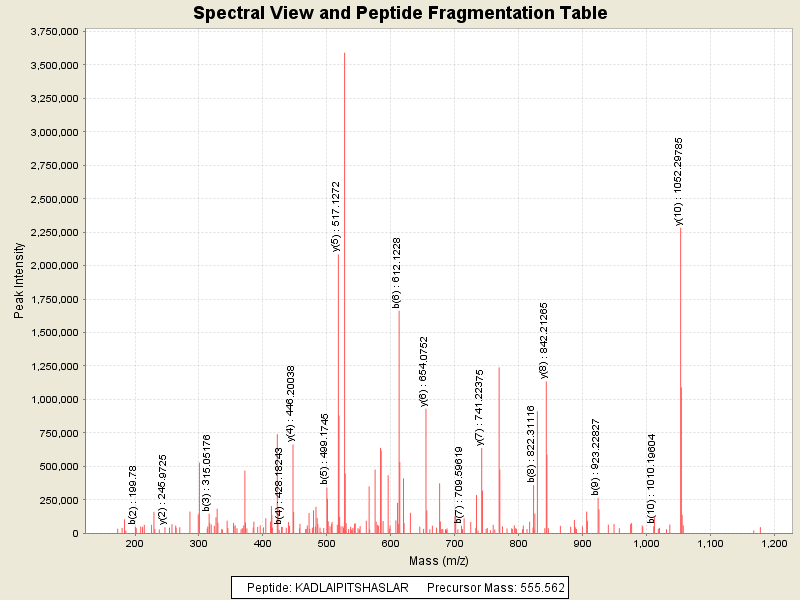 Observed intensity of peptide: 1.2993164E7