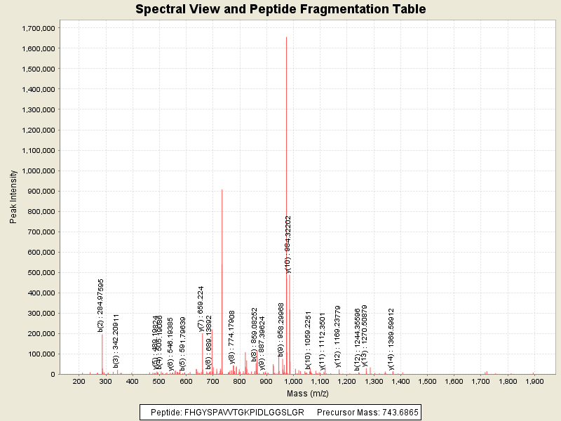 Observed intensity of peptide: 2369021.0