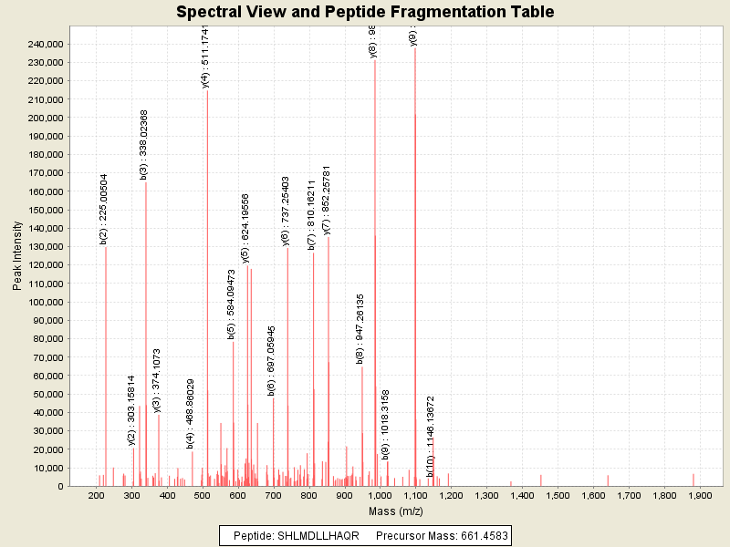 Observed intensity of peptide: 2335968.0