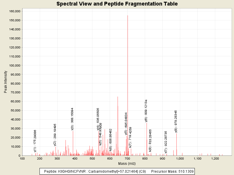 Observed intensity of peptide: 831000.0