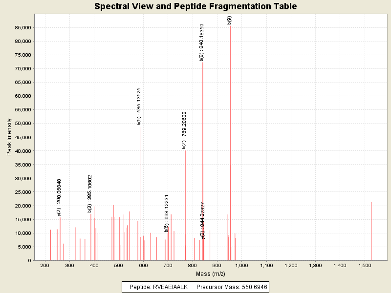 Observed mass of peptide: 550.6945800781, (+2)