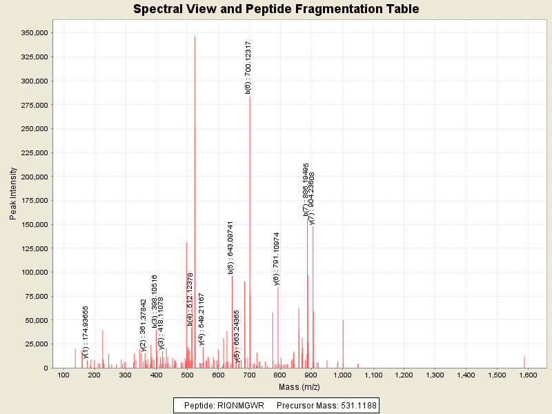Observed intensity of peptide: 2637610.0