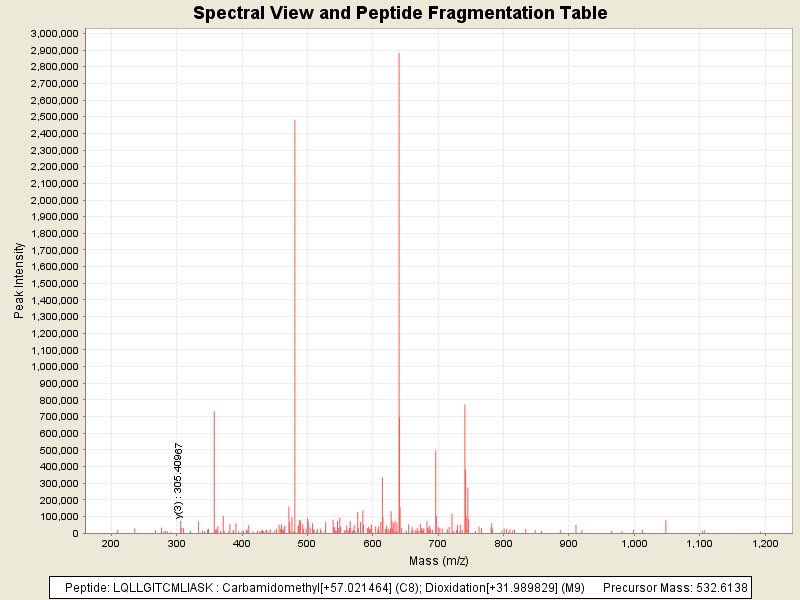Observed intensity of peptide: 7366219.0