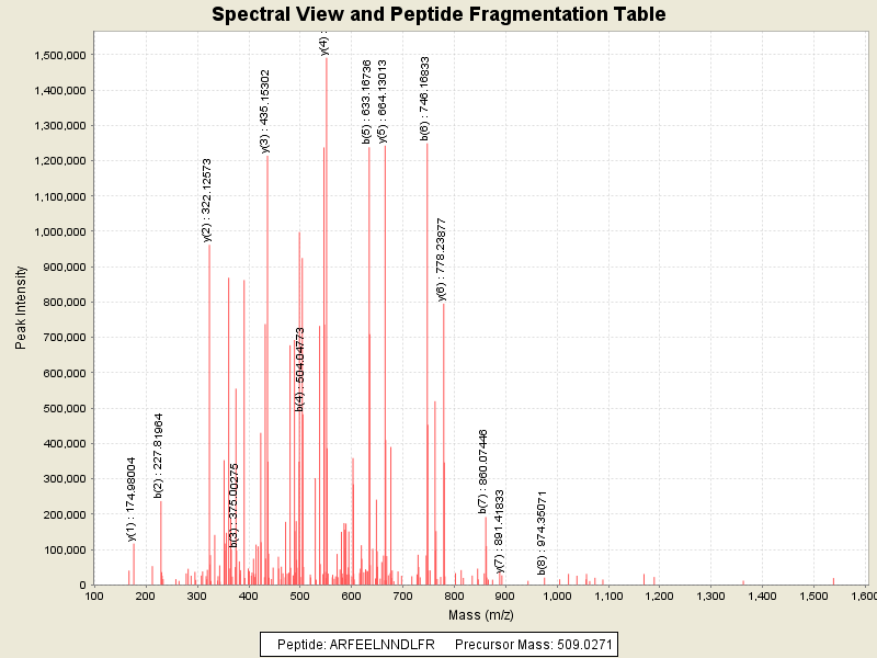 Observed intensity of peptide: 1.3645296E7