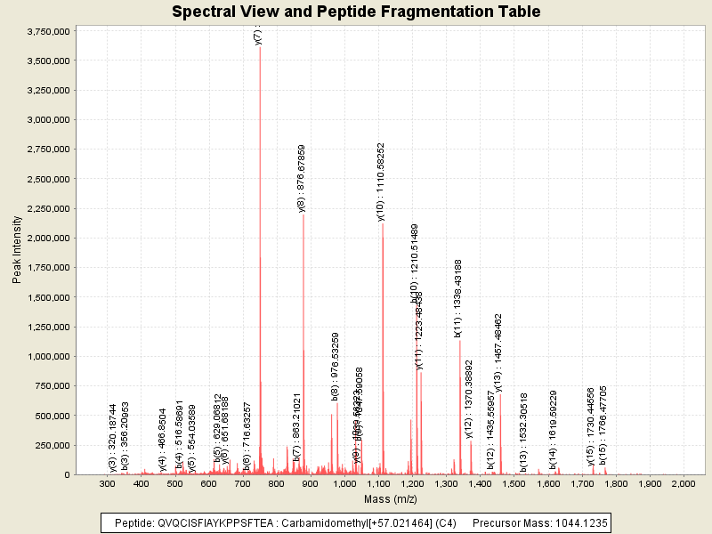 Observed intensity of peptide: 5.6893888E7