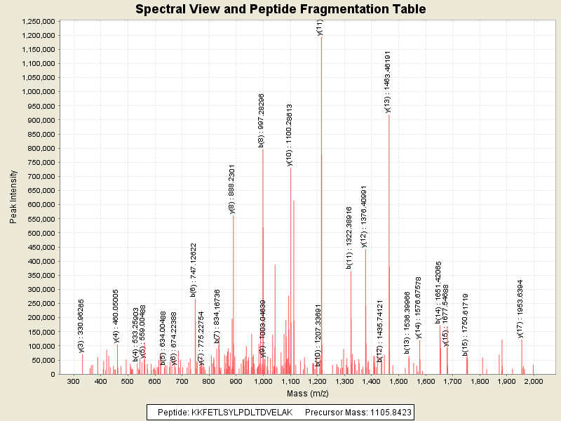 Observed intensity of peptide: 1.194493E7