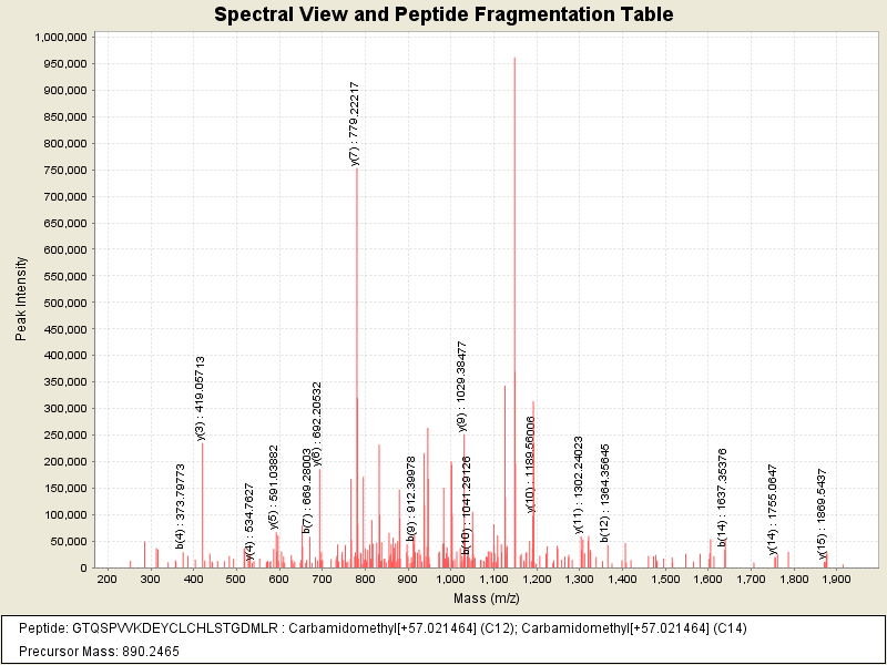 Observed intensity of peptide: 1.6782864E7
