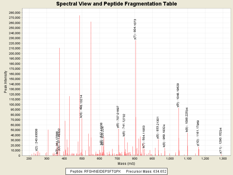 MS/MS Fragmentation of: RFGHNEIDEPSFTQPK