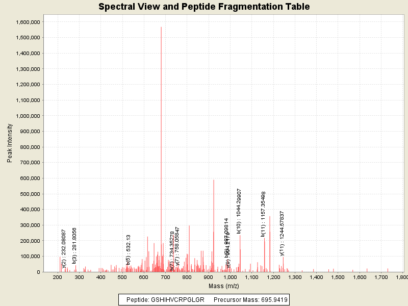Observed intensity of peptide: 1.1883076E7