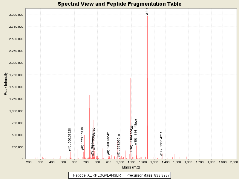 Observed intensity of peptide: 2.572452E7