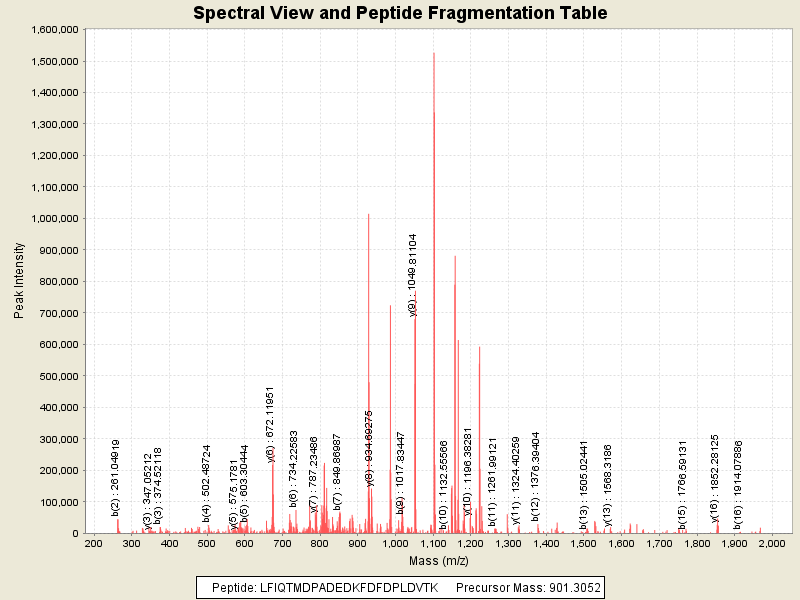 MS/MS Fragmentation of: LFIQTMDPADEDKFDFDPLDVTK
