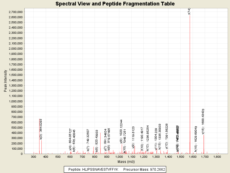 Observed intensity of peptide: 1.8829024E7