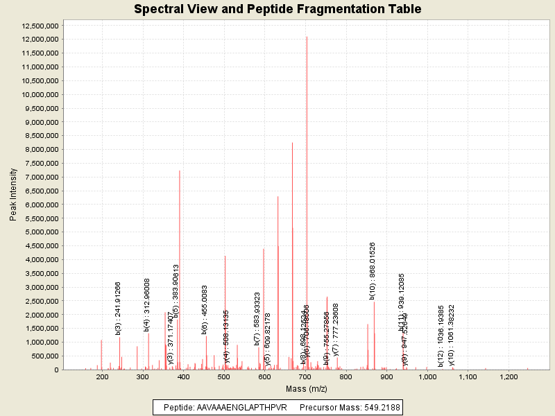 Observed intensity of peptide: 2.174972E7