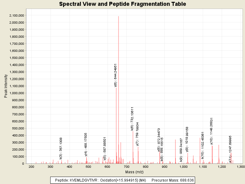 Observed intensity of peptide: 9983180.0