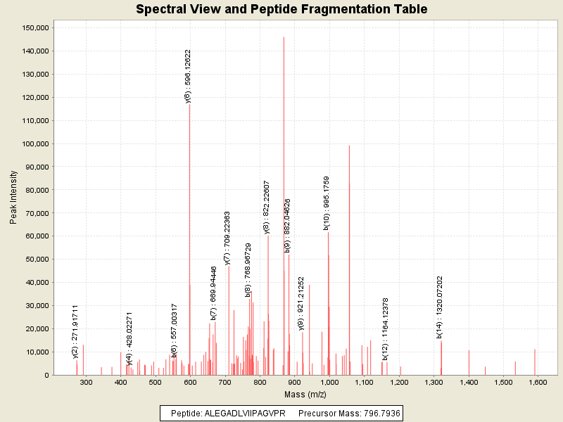Observed mass of peptide: 796.7935791016, (+2)