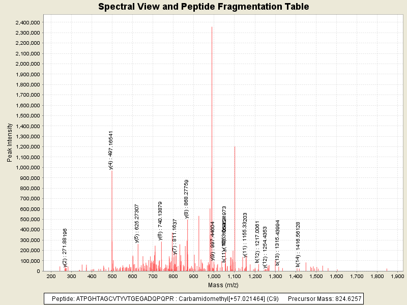 Observed intensity of peptide: 3.7524608E7