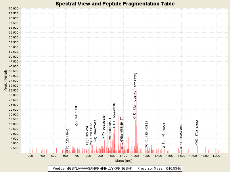 16 | 769.8752 | 1538.7426 | H | 1735.9652 | 868.4865 | 15 |