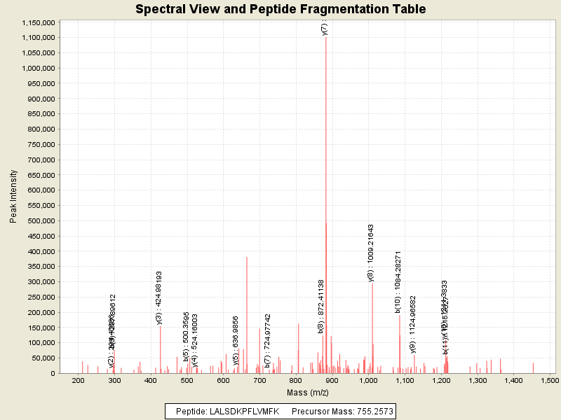 Observed intensity of peptide: 1.430228E7