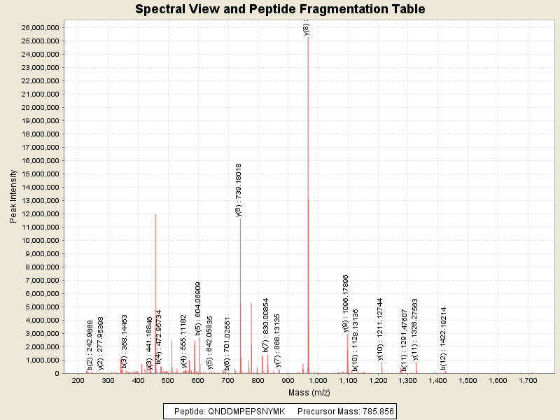 Observed mass of peptide: 785.8559570312, (+2)