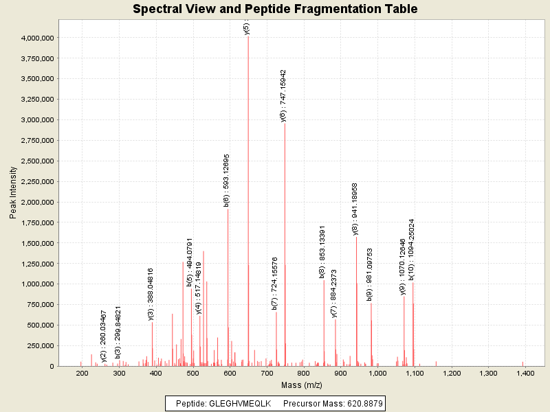 Observed intensity of peptide: 1.5319828E7