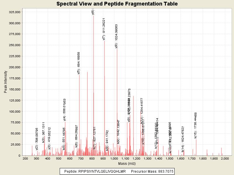 Observed intensity of peptide: 2819390.0