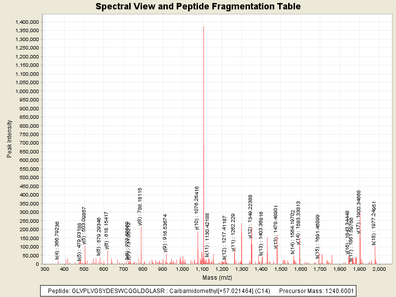 Observed intensity of peptide: 1.00730176E8