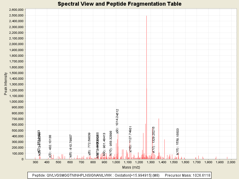 Observed intensity of peptide: 2.3813056E7