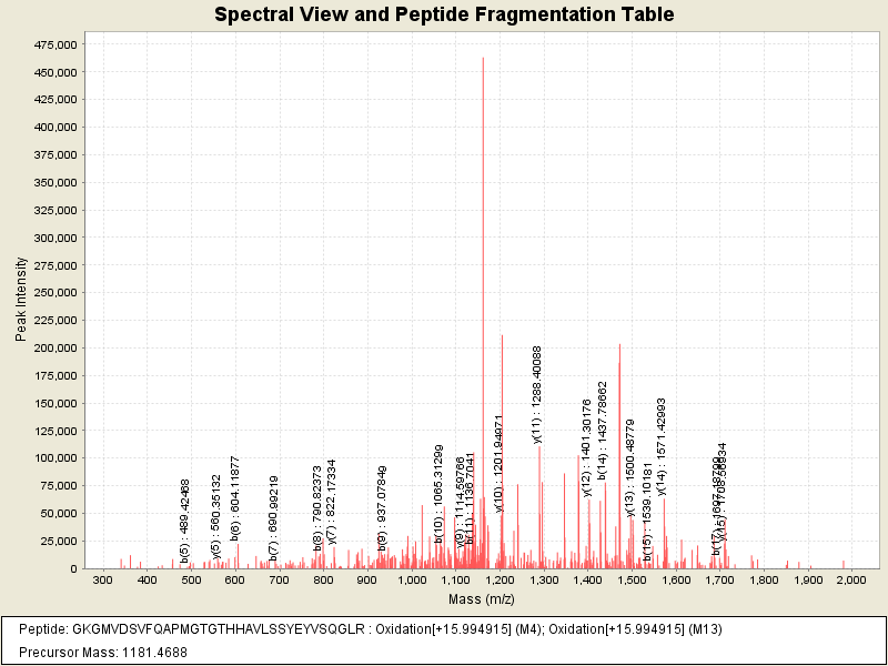 Observed intensity of peptide: 4331930.0