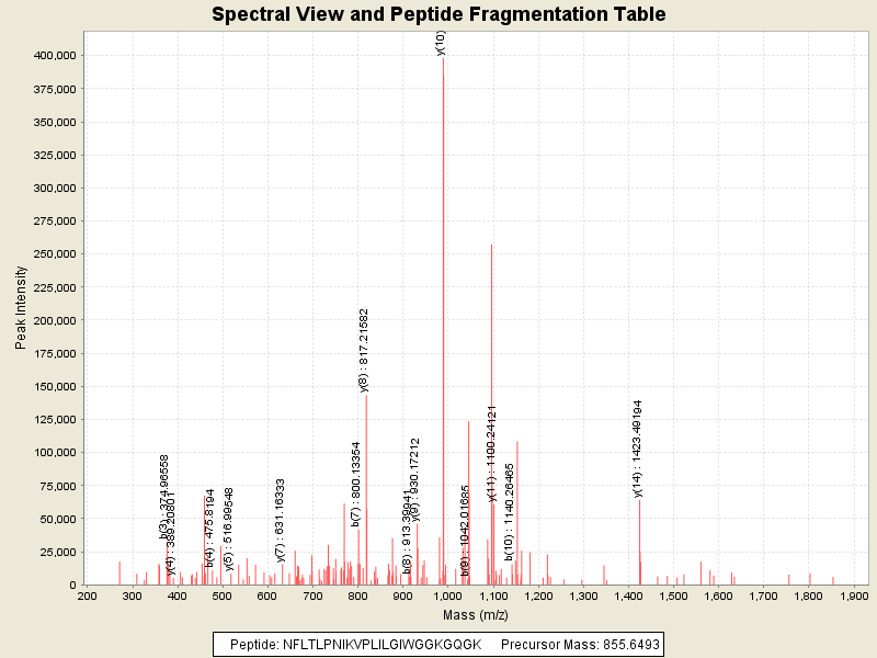 Observed intensity of peptide: 3050337.0