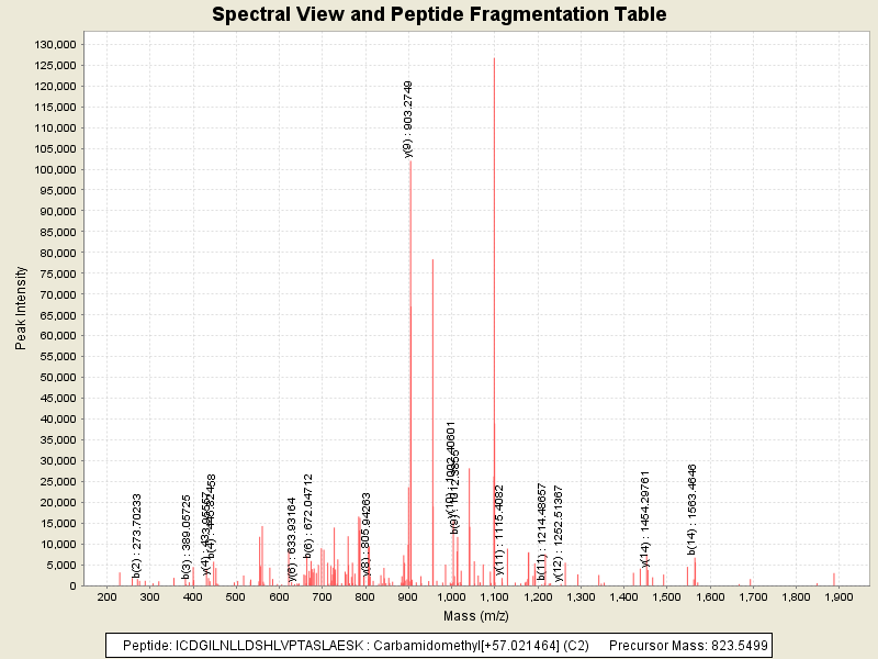 Observed intensity of peptide: 2.1500784E7