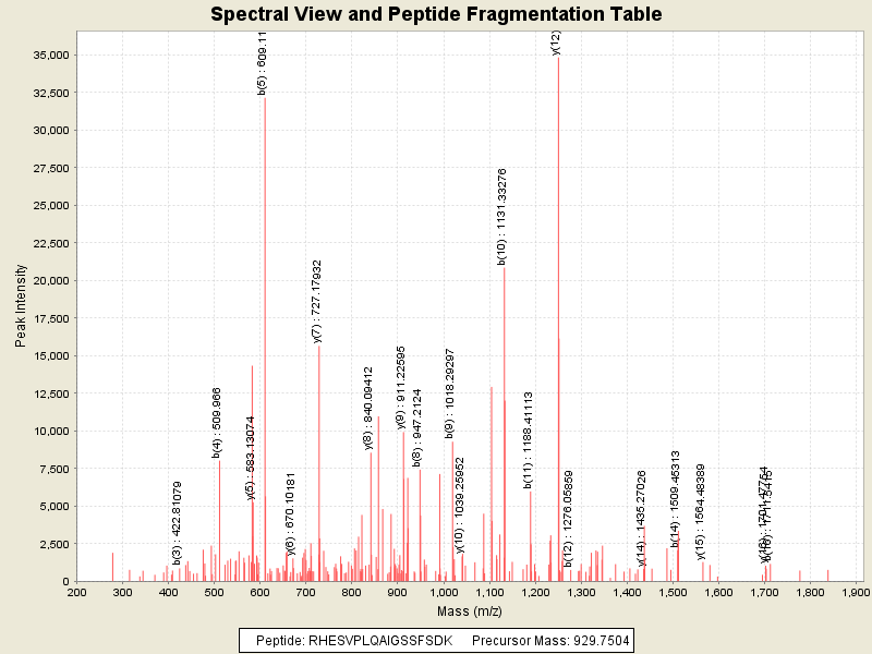 Observed intensity of peptide: 1390650.0