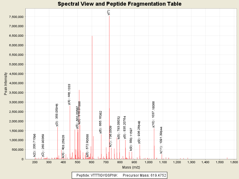Observed intensity of peptide: 3.3198632E7