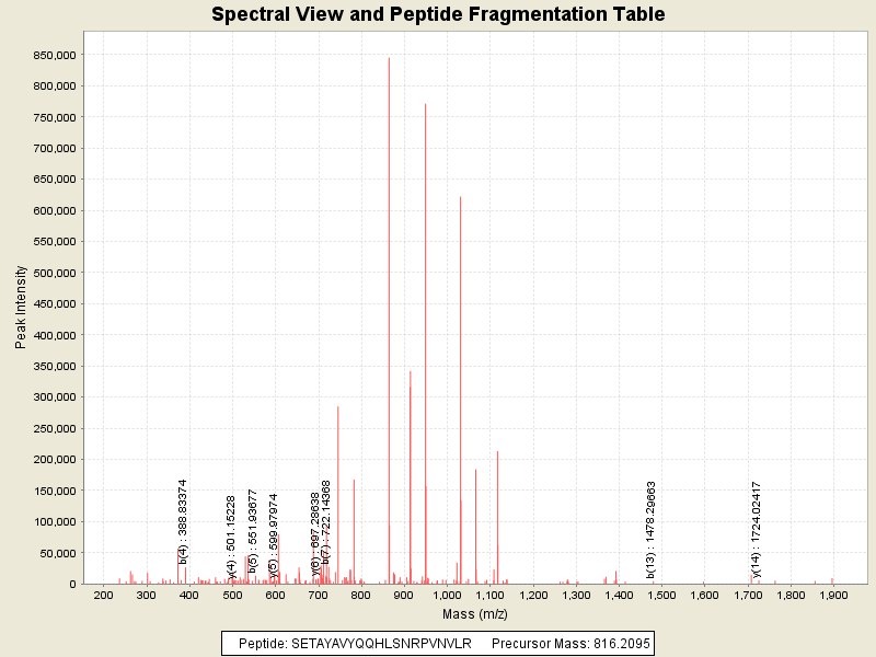 Observed mass of peptide: 816.2094726562, (+3)