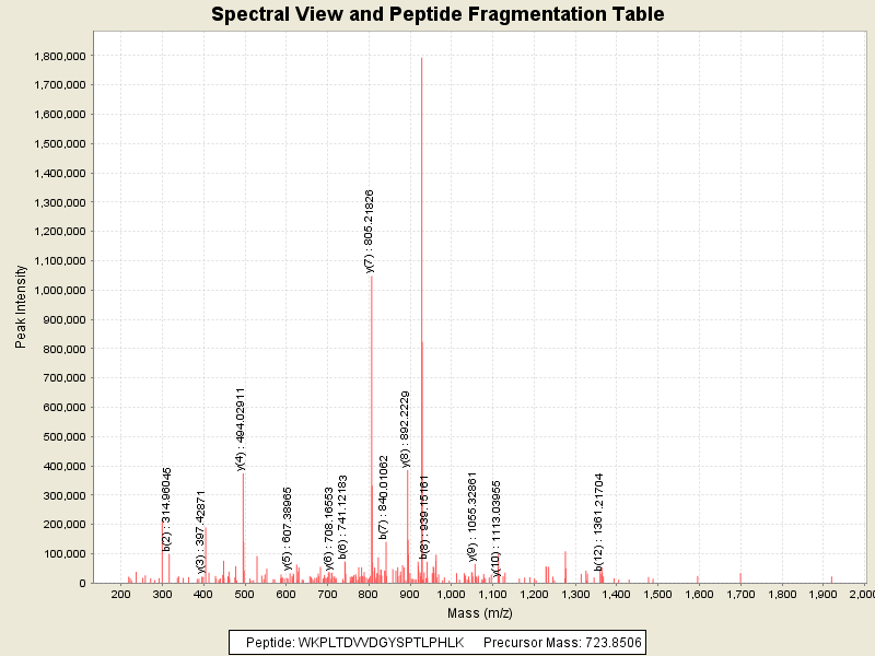 Observed intensity of peptide: 1.4651048E7