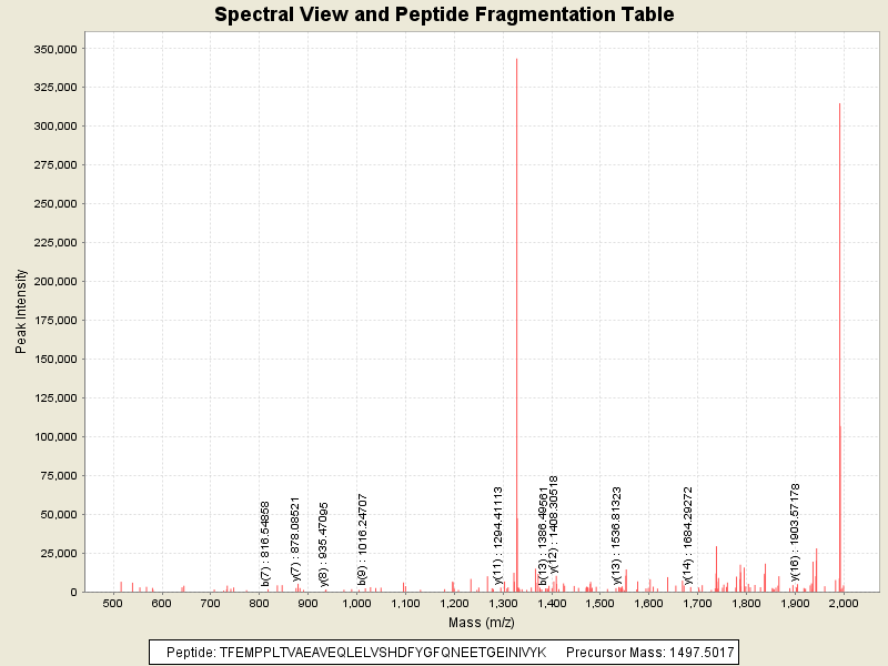 Observed intensity of peptide: 1590551.0