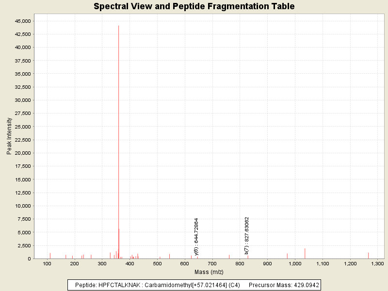 Observed intensity of peptide: 101711.0